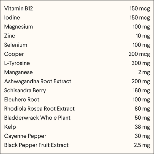 ✅ Supports thyroid function and manages cortisol with herbs and minerals that nourish the thyroid and regulate stress response
